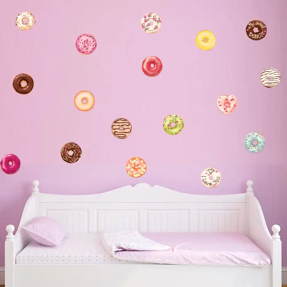 18 Pcs Colorful Doughnut Cake Wall Sticker Kids Bedroom Diy Decal