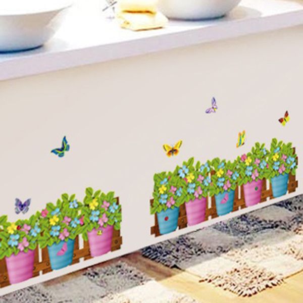 Beautiful Flowerpot Butterfly Wall Decals Nature Green Plant